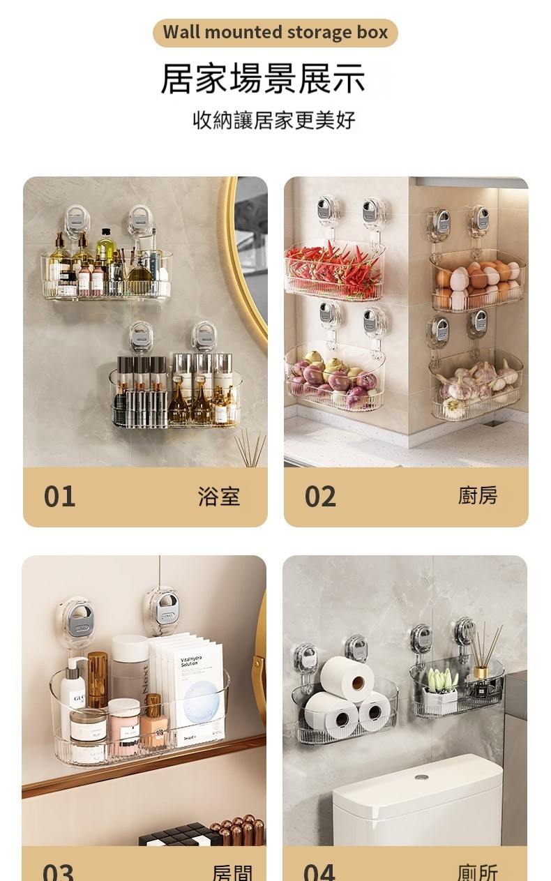 4分鐘前桌上总是乱糟糟?试试這個 #免打孔吸盤置物架 免鑽孔不傷牆!隨心換位不留痕!乾淨整潔收納無拘束! - 【均價319】五入組NT$1599