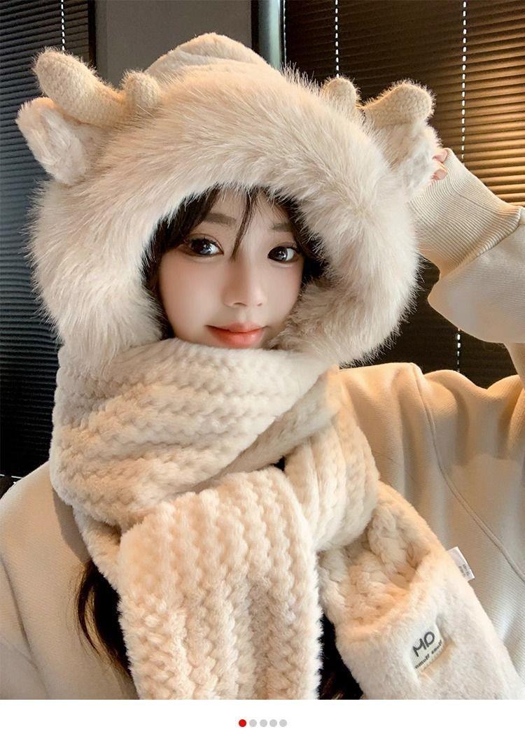 15分鐘前【熱銷免運】新款可愛帽子圍巾一體女冬季連帽圍脖加厚保暖毛絨三件套騎車 毛線帽 針織帽 毛帽 小熊造型 可愛毛帽 - 【超夯活動】閨蜜兩入組$1099