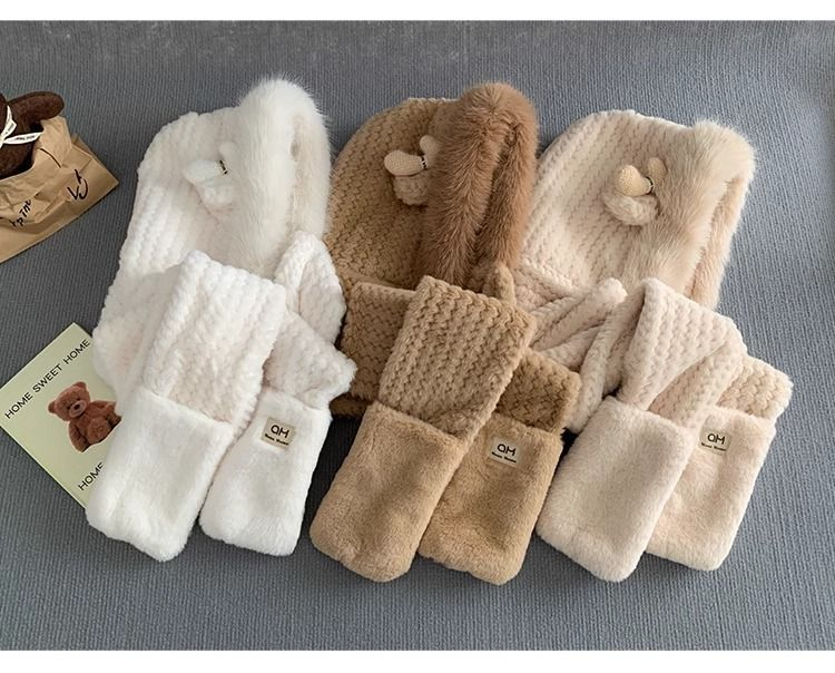 20分鐘前【熱銷免運】新款可愛帽子圍巾一體女冬季連帽圍脖加厚保暖毛絨三件套騎車 毛線帽 針織帽 毛帽 小熊造型 可愛毛帽 - 【狂殺特賣】團購三入組$1399