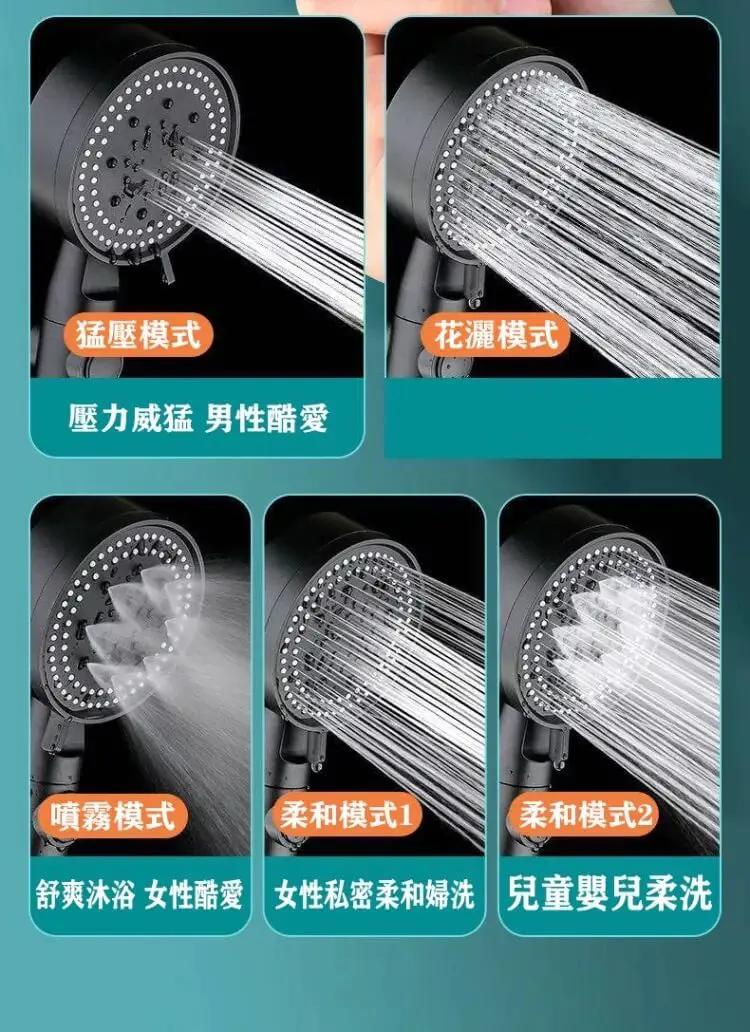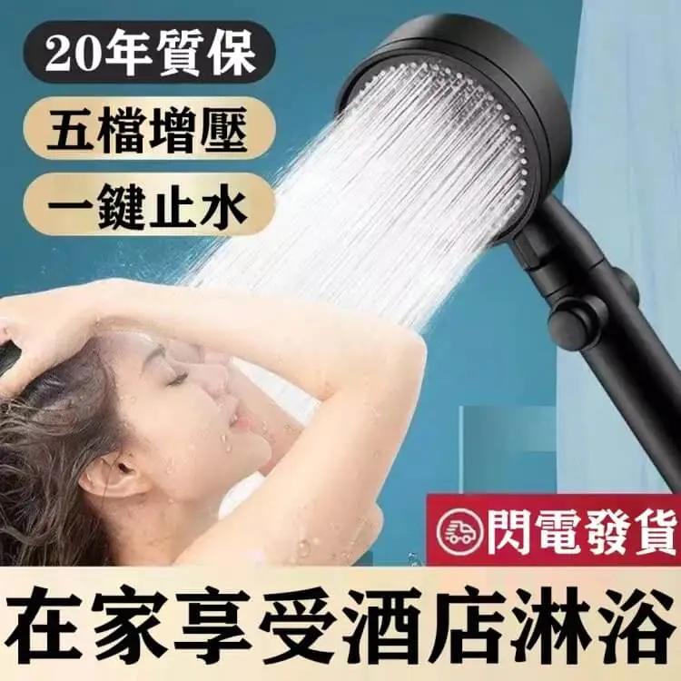 20分鐘前【熱銷10萬+】【黑武士花灑】升級款五檔增壓花灑,五檔調節,一鍵止水,強增壓,大出水,在家享受酒店淋!浴 - 【超夯團購!任選5件】僅需NT$1179 均價235/件